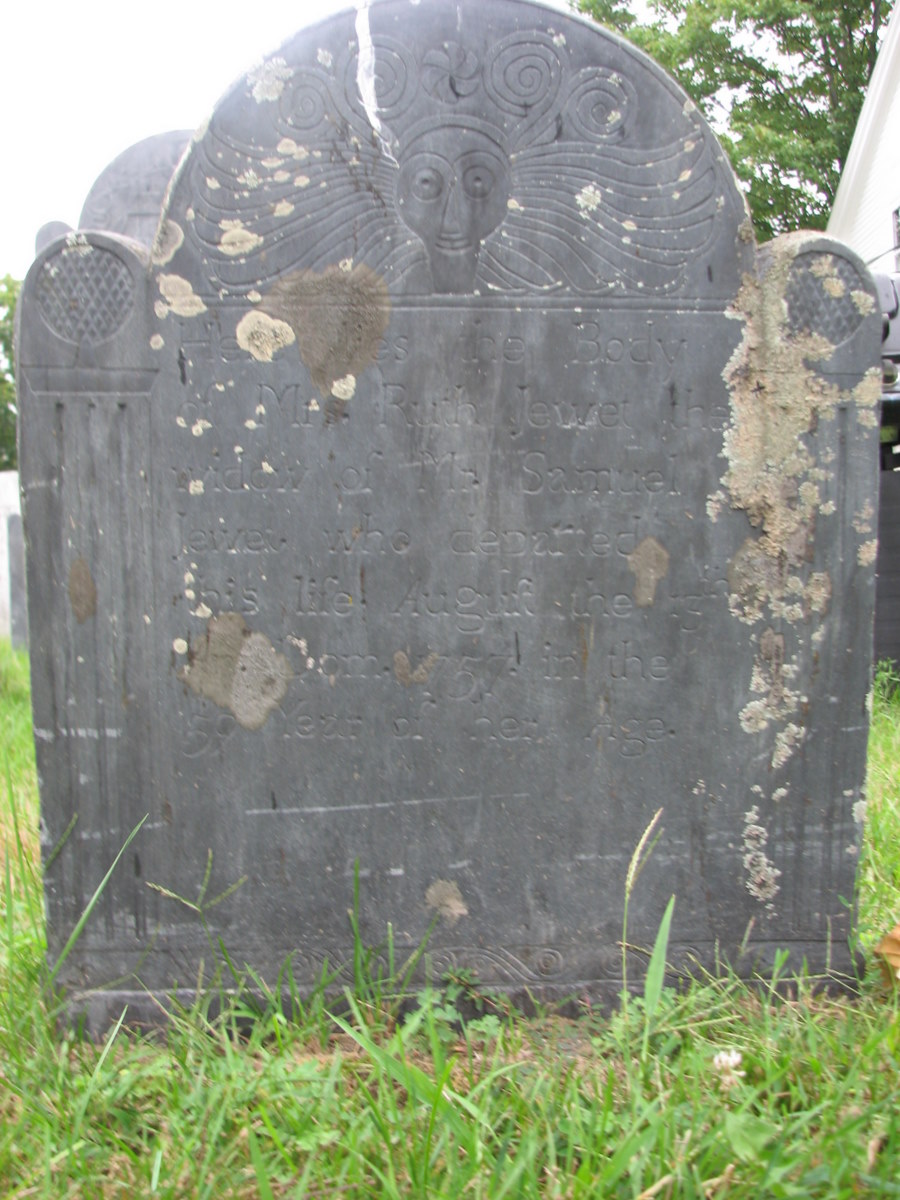 Ruth Hardy, age 19, married Samuel Jewett, age 24 , son of Francis Jewett and Sarah Hardy, on 23 October 1718 at Bradford, Massachusetts.3,2,4 Ruth Hardy was mentioned in the will of Samuel Jewett on 18 July 1752 at Hollis, New Hampshire.5 Ruth Hardy died on 13 August 1757 at Hollis, New Hampshire, at age 58.1,6 She was buried at Congregational Church Cemetery, Hollis, New Hampshire. Ruth's epitaph reads: