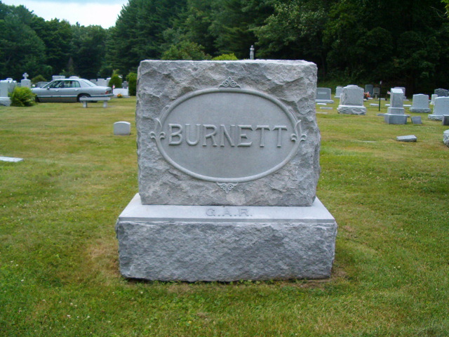 Frank William Burnett was born on 10 August 1842 at Henryville, Québec, Canada.1,2,3 He was the son of Franklin Burnett and Zoe Babin dite LaCroix. Frank William Burnett was christened on 14 August 1842 at St-Georges Paroisse, Henryville, Québec, Canada.3 His first name may have been Francis originally. He immigrated circa 1850 to the United States based on the birthdates and places of his siblings. Heappeared on the US Census of 1850 in the household of Franklin Burnett and Zoe Babin dite LaCroix at Johnson, Vermont.4 Frank, age 17 years, appeared on the US Census of 1860 at Alburg, Vermont.5 Heappeared on the US Census of 1860 in the household of Franklin Burnett and Zoe Babin dite LaCroix at Alburg, Vermont.5 According to the Federal Census in 1860, Frank was a farm laborer working on the Honsinger farm.5 Frank lived in 1861 at St. Albans, Vermont.6 On 4 September 1861, he enlisted in the 5th Vermont Infantry, Company C as a private He deserted 25 October 1862, but rejoined 21 February 1863. He was wounded in the Battle of the Wilderness on 5 May 1864. He served until April 1865.6,7,8,9