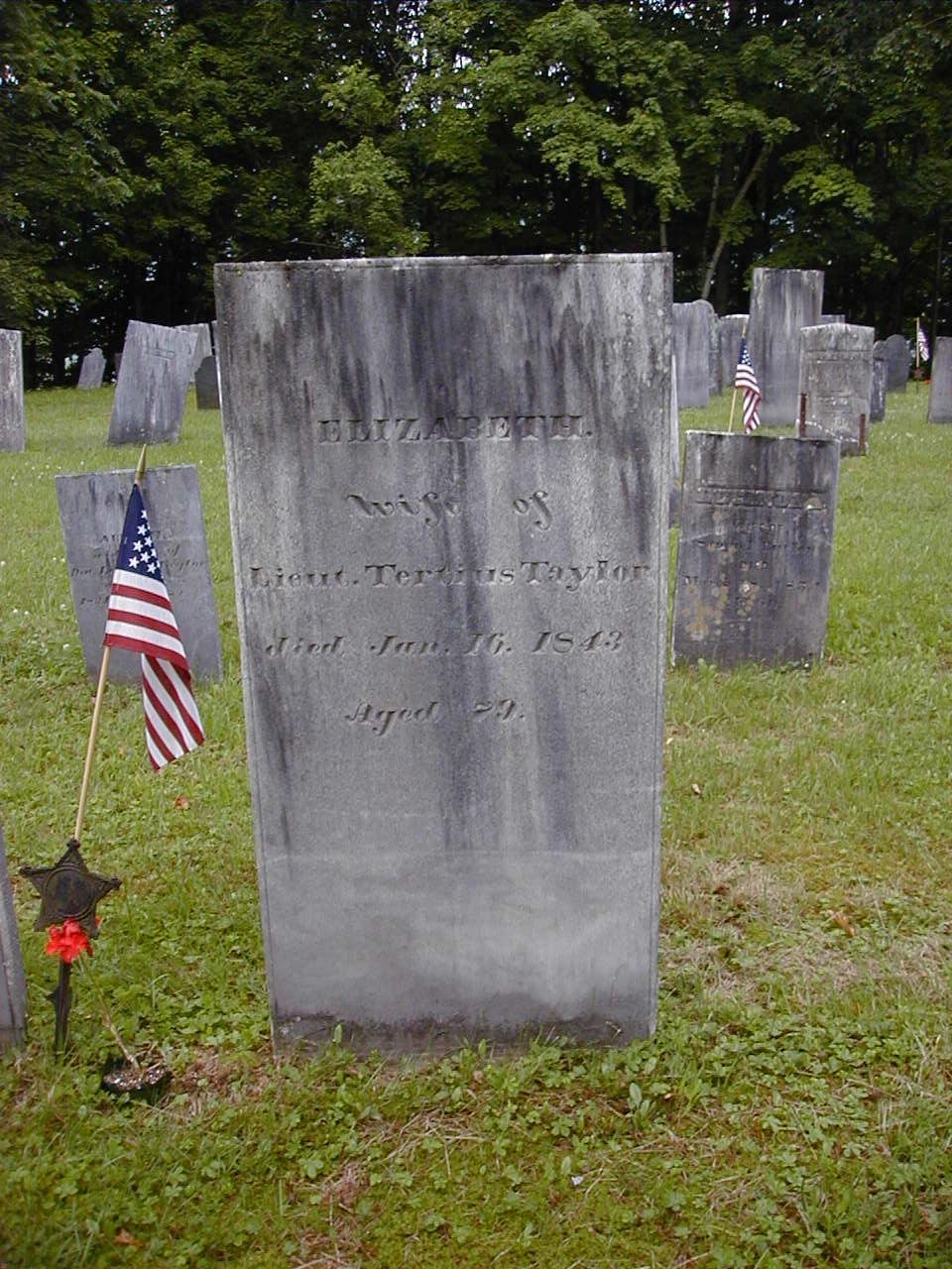Elizabeth Carter, age 18, married Lt. Tertius Taylor, age 27 , son of Captain Orthniel Taylor and Martha Arms, on 2 August 1781 at Buckland, Massachusetts.