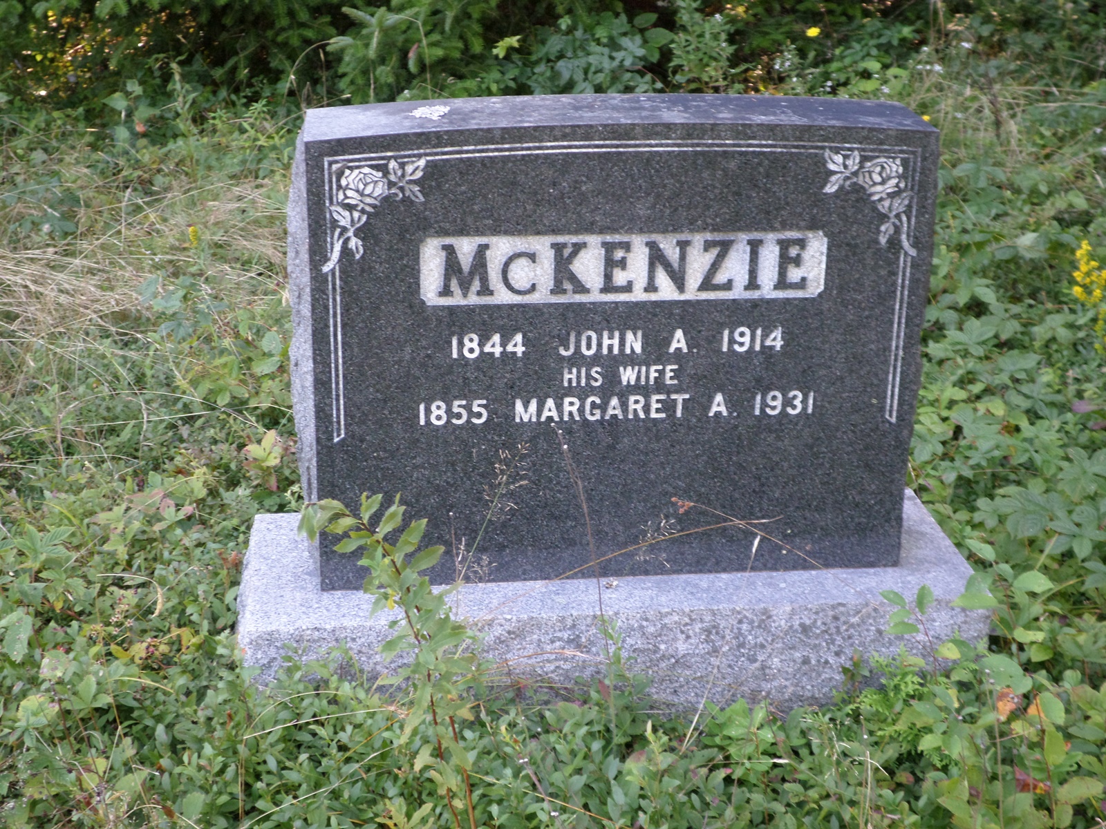 John Alexander McKenzie appeared as Head of Household with his wife Margaret McKenzie, on the Canadian Census of 1891 at Saint George, Charlotte County, New Brunswick, Canada; They were members of the Free Church.6 John was a farmer. He was listed as a farmer in the 1901 and the 1911 Census' as well in 1891.6 John, age 57 years, and Margaret McKenzie, age 44 years appeared on the Canadian Census of 1901 at Saint George, Charlotte County, New Brunswick, Canada. Their religion was listed as Presbyterian.2 John Alexander McKenzie appeared as Head of Household with his wife Margaret McKenzie, on the Canadian Census of 1911 at Mascarene, Charlotte County, New Brunswick, Canada.7 He died on 1 March 1914 at Mascarene, Charlotte County, New Brunswick, Canada, at age 70 from heart failure.3,8